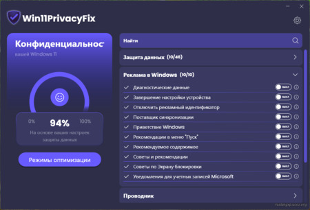 Оптимизация проводника и фоновых служб: Win11PrivacyFix настраивает работу проводника и фоновых служб, чтобы повысить производительность и уровень безопасности системы.