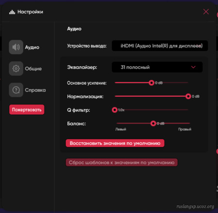 Добавлена кнопка "Восстановить настройки по умолчанию" для восстановления регулировок звуком в настройках Аудио