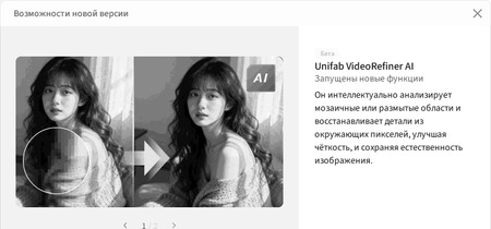 3. Конвертер телешоу; 4. Audio Upmix AI из них 4 Бесплатные: Удаления вокала, Удаления фона видео, Конвертер и Сжатие. UniFab 4 интегрированы функции FabCloud AI Облака, новое: AI Видеоувеличитель с FabCloud — функция облачного масштабирования, использующая мощные облачные вычисления для более быстрой обработки увеличения