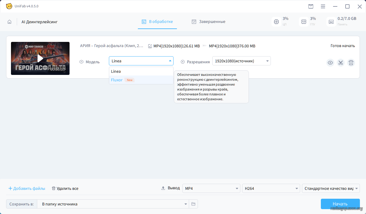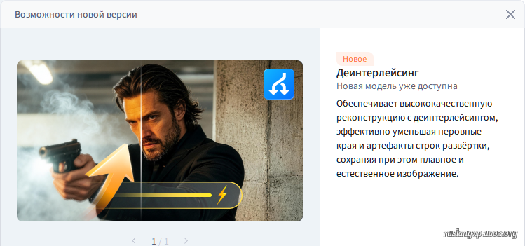 обновленные механизмы AI, для увеличения скорости конвертации, для большинства видеокарт в среднем на 20%. AI Стабилизация, он использует AI для исправления дрожания видео и создания более плавного и стабильного визуального эффекта. Оптимизировано выводе H265 с HDR и стабилизатором переключается на аппаратное кодирование, что приводит к увеличению скорости кодирования на 50–100%. опция в настройках для передачи чересстрочного видео в Дейнтерлейсинг. Новая модель - Statys, она обеспечивает более стабильные кадры с естественным сохранением деталей в сложных сценариях движения и ручной съемки. Удаление фона - Бесплатный, поддерживает удаление фона из видео с сохранением портрета. Улучшения лица (Face Enhancer) AI он использует AI технологию для интеллектуального распознавания лиц и улучшения деталей.